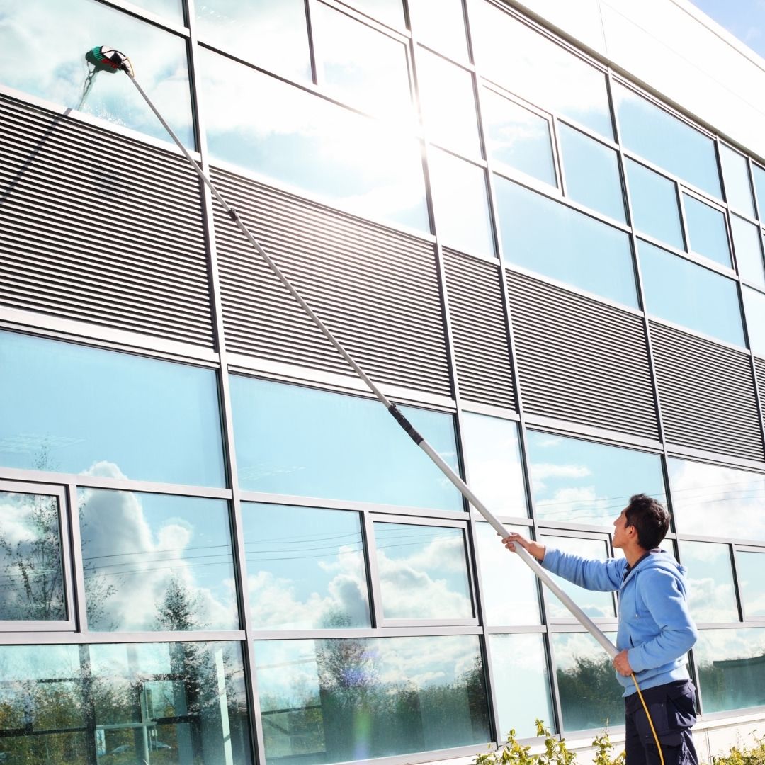 Since your regular cleaning staff possess neither the skills or resources to clean the external surface and the windows of the building, your best bet would be to hire a reputable commercial window cleaning company.